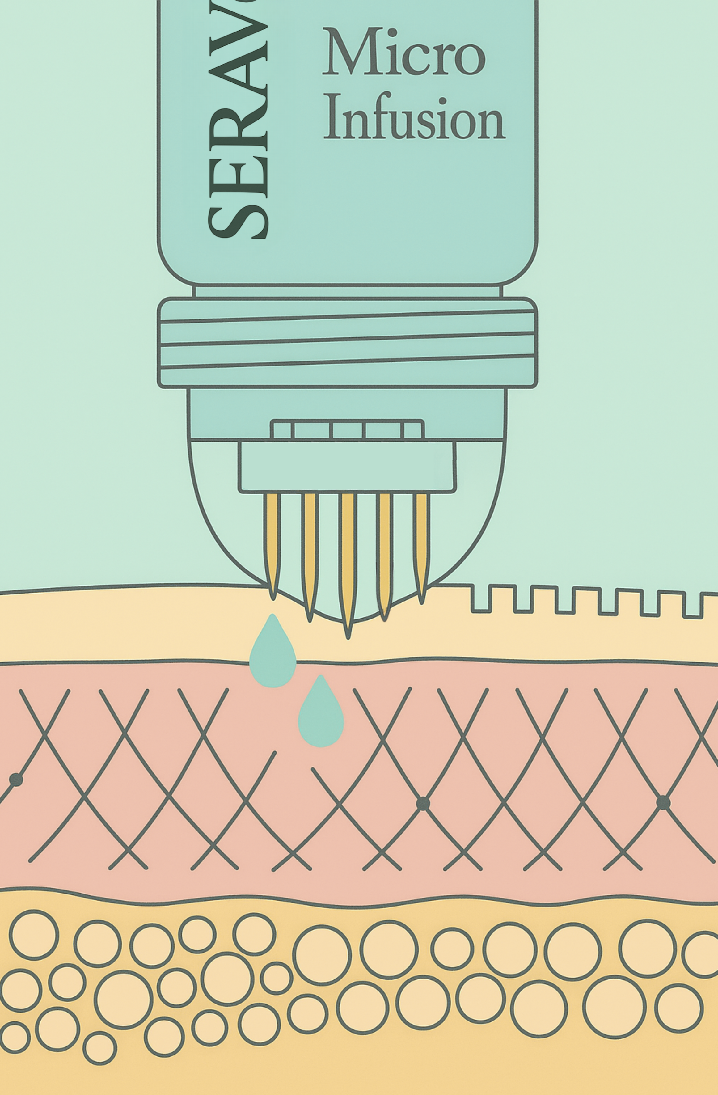 Our Micro-Infusion System uses ultra thin painless needles to create micro-channels in the top layer of the skin.